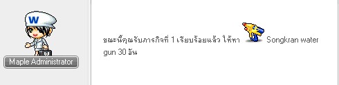 ภารกิจที่ 1 : ให้รับภารกิจแล้วผู้เล่นจะถูกสุ่มให้หา ของ 1 ชนิด จำนวน 30 อันมาส่ง