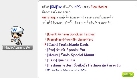ตัวอย่าง โดยสามารถซื้อได้ที่ NPC Maple Adminstrator หากผู้เล่นซื้อแล้ว สถานะ Festival Pass จะเปลี่ยนจาก ยังไม่มี เป็น มีแล้ว